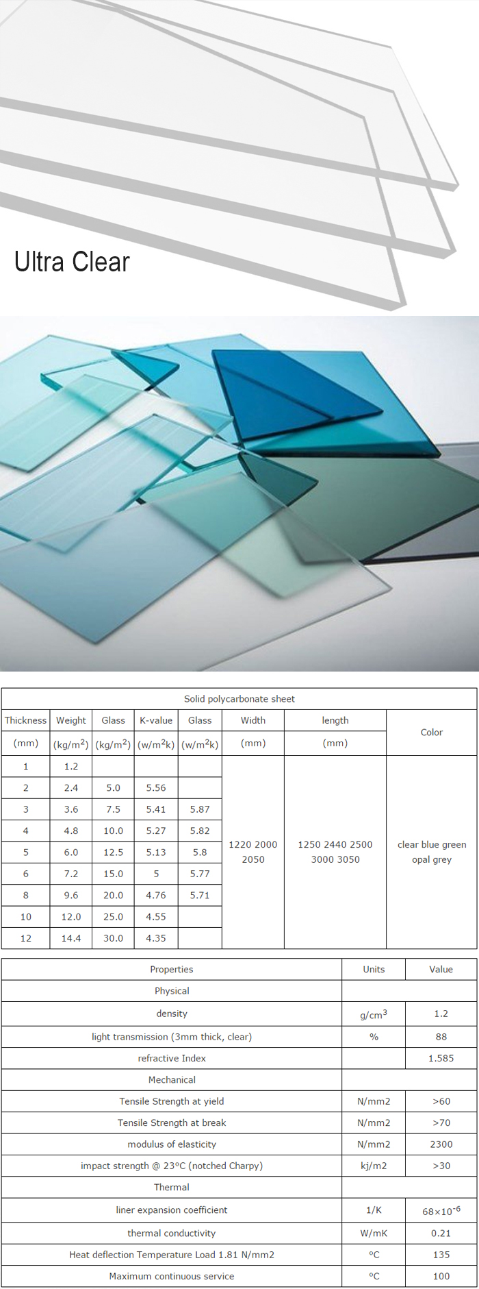 Solid structure gives higher impact strength then other plastic sheets or hollow polycarbonate sheets. Its impact strength is about as 200 times much as common glass, and about 10 timer stronger than toughened glass. -